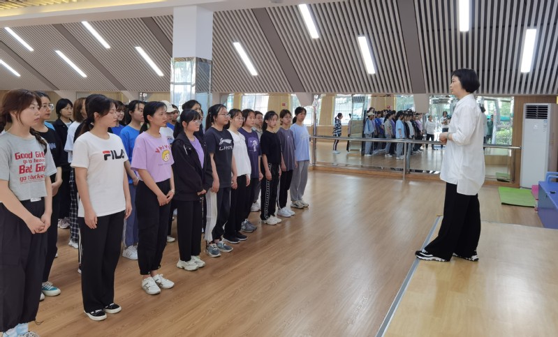 2021年6月3日下午,天气闷热、阴云密布,我校形体房内却热情洋溢、气氛热烈,2点30分,世界冠军范雪萍迈着轻盈地步伐走进教室,静候的同学们立即报以热烈掌声。