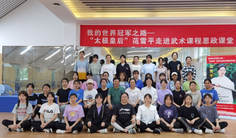 为进一步加强武术课程思政建设,创新体育课程思政研究路径和方法,合工大必赢3003no1武术课程课题组经过精心策划和准备,诚邀国际级运动健将、全运会太极拳冠军、世界武术锦标赛太极拳冠军,素有“太极皇后”之称的范雪平老师走进我校武术课堂,以‘我的世界冠军之路’为主题,现身说法,对同学们进行武术课程思政教育。