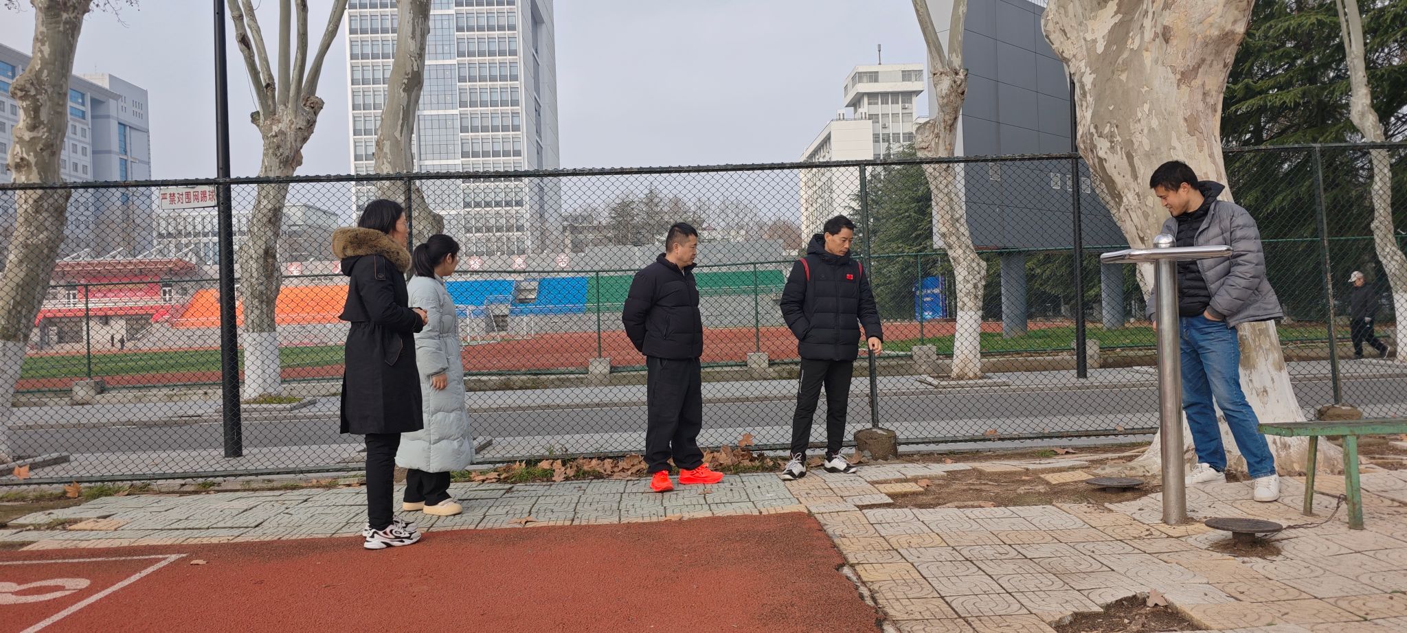 检查过程中,党支部党员同志对田径场、篮球场、手球场、排球场、健身路径等各类体育场地的地面平整度、防护设施完整性进行细致检查,同时对单杠、双杠、漫步机等体育器材的牢固性、磨损情况等进行逐一排查,详细记录器材锈蚀、部件松动、场地破损等问题,并将发现的隐患问题报必赢3003no1场地管理中心,由中心在系统平台报修。