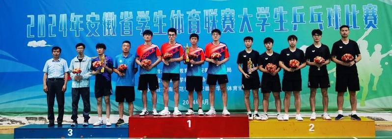 2024年8月10—17日,安徽省大学生体育联赛大学生乒乓球比赛在淮南师范学院体育馆举行。比赛由安徽省教育厅、安徽省体育局主办,安徽省学校体育协会执行,淮南师范学院 安徽省学校体育协会乒乓球分会承办,有27所本科高校参加了本次甲组比赛七个项目的角逐,童彦章、杜冬琴2位教练带领必赢线路检测3003乒乓球队10名队员出征本届大赛,荣获2024年安徽省大学生乒乓球联赛冠军、亚军、季军等8项荣誉。