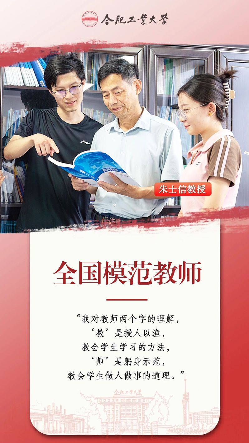 三尺讲台、四季桃李。朱士信始终心怀大我,以赤诚之心、奉献之心、仁爱之心投身党的教育事业,努力做学生为学、为事、为人的大先生,用自己的实际行动践行教育家精神,做言为士则、行为世范的表率。