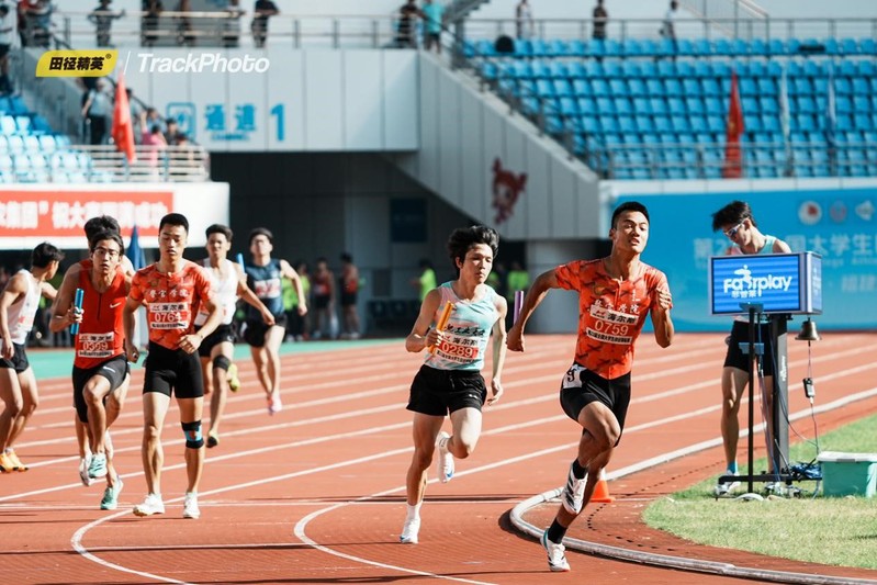 图9顾恺文和岳凌峰在男子4*400接力比赛交接棒时图片