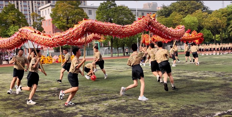 8月21日,随着军训汇演的举行,附中同学们迎来了展示自己学习成果的时刻。他们身着华丽的舞龙舞狮服装,在操场上龙腾狮跃,将所学技艺展现得淋漓尽致。精彩的表演赢得了现场师生的阵阵掌声和喝彩声,也为此次暑期实践活动画上了圆满的句号。