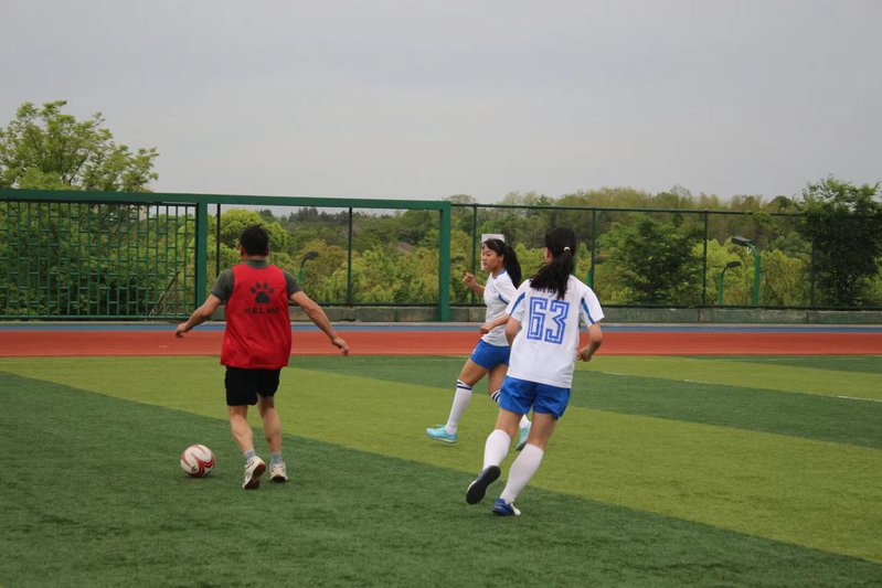 4月24日,宣城校区学生女子足球队与体育教师足球队进行了以“以足球快乐健身、促进课外体育锻炼”为目标的交流友谊赛。
