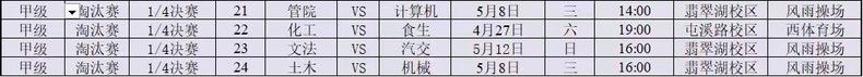 图七:甲级四分之一决赛赛程安排(可能受天气影响,比赛时间以实际为准)