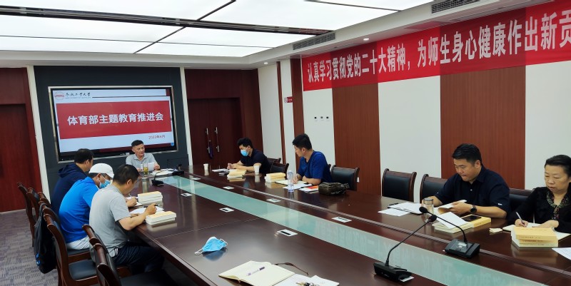 祖权书记最后强调,开展主题教育是为了“知信行统一,推动促进单位事业发展”。我们要按照《必赢3003no1主题教育方案》,聚焦主题主线,提前谋划、统筹安排,把理论学习、调查研究、推动发展、检视整改有机融合、一体推进。将主题教育工作融入党支部 “三会一课”组织生活,增强干部和党员学习贯彻习近平新时代中国特色社会主义思想的自觉性,“变要我学,为我要学”。把主题教育与体育工作结合起来,切实做到以强化理论学习指导发展实践,以深化调查研究推动解决学校体育工作发展难题,把学习和调研落实到贯彻党的二十大决策部署中去,把主题教育的成效转化为推动学校体育工作成果,体现在所指导的运动队取得实际成绩中。