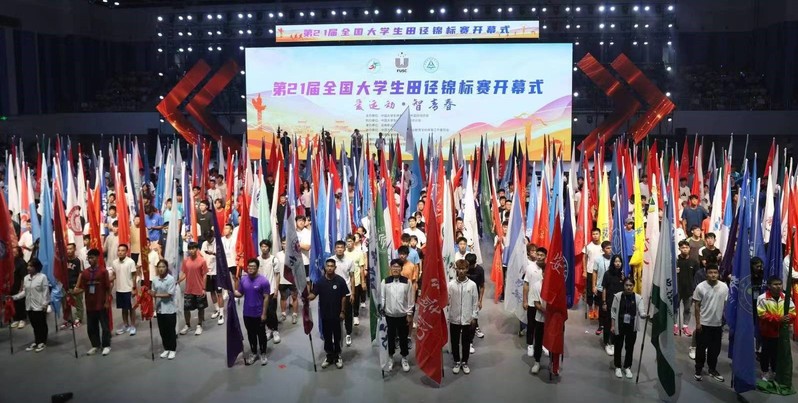 图1第21届全国大学生田径锦标赛开幕式