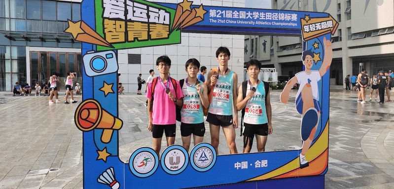 激动人心的是,在最后一天上午的比赛中,由汽交学院岳凌峰、史洋洋、宣城校区孙雄耀、顾恺文四名同学组成的男子接力队伍克服高强度比赛节奏等困难,在男子甲组4*400米接力预赛中以3分23秒19的成绩成功晋级决赛,打破了该项目我校去年创下的校纪录,同时刷新了该项目安徽省纪录。随后他们在下午的决赛中荣获第三名,夺得了我校大学生在本届国家级田径赛事上的首枚奖牌。