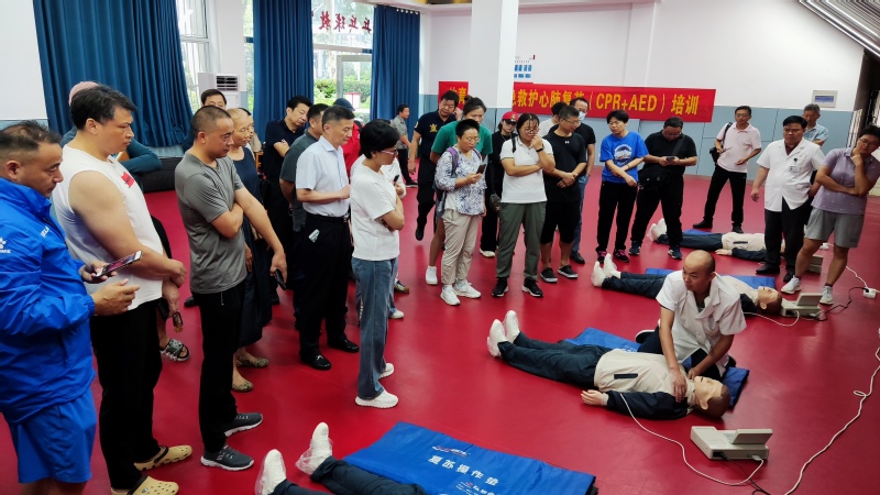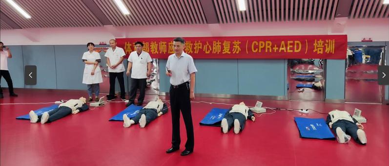 2023年9月20日上午必赢3003no1在屯溪路校区乒乓球教室,举办“体育教师应急救护心肺复苏(CPR+AED)培训”,必赢3003no1全体教职工参加了培训,活动由党总支书记祖权主持。