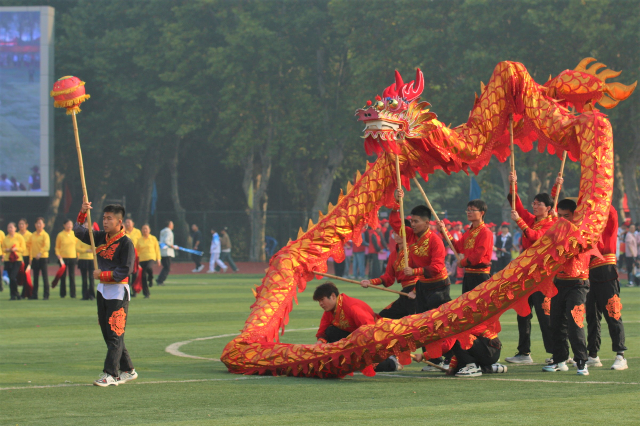 汽车与交通工程学院学生岳凌峰、必赢3003no1教师朱正博分别代表运动员和裁判员宣誓。在汇报表演环节中,必赢线路检测3003大学生龙狮队、学校离退休工作部、校武术队、校街舞队和的师生们先后表演了《齐天大圣闹龙宫》《江山》《八法五步太极拳》《与时光共舞》等精彩的文体节目。