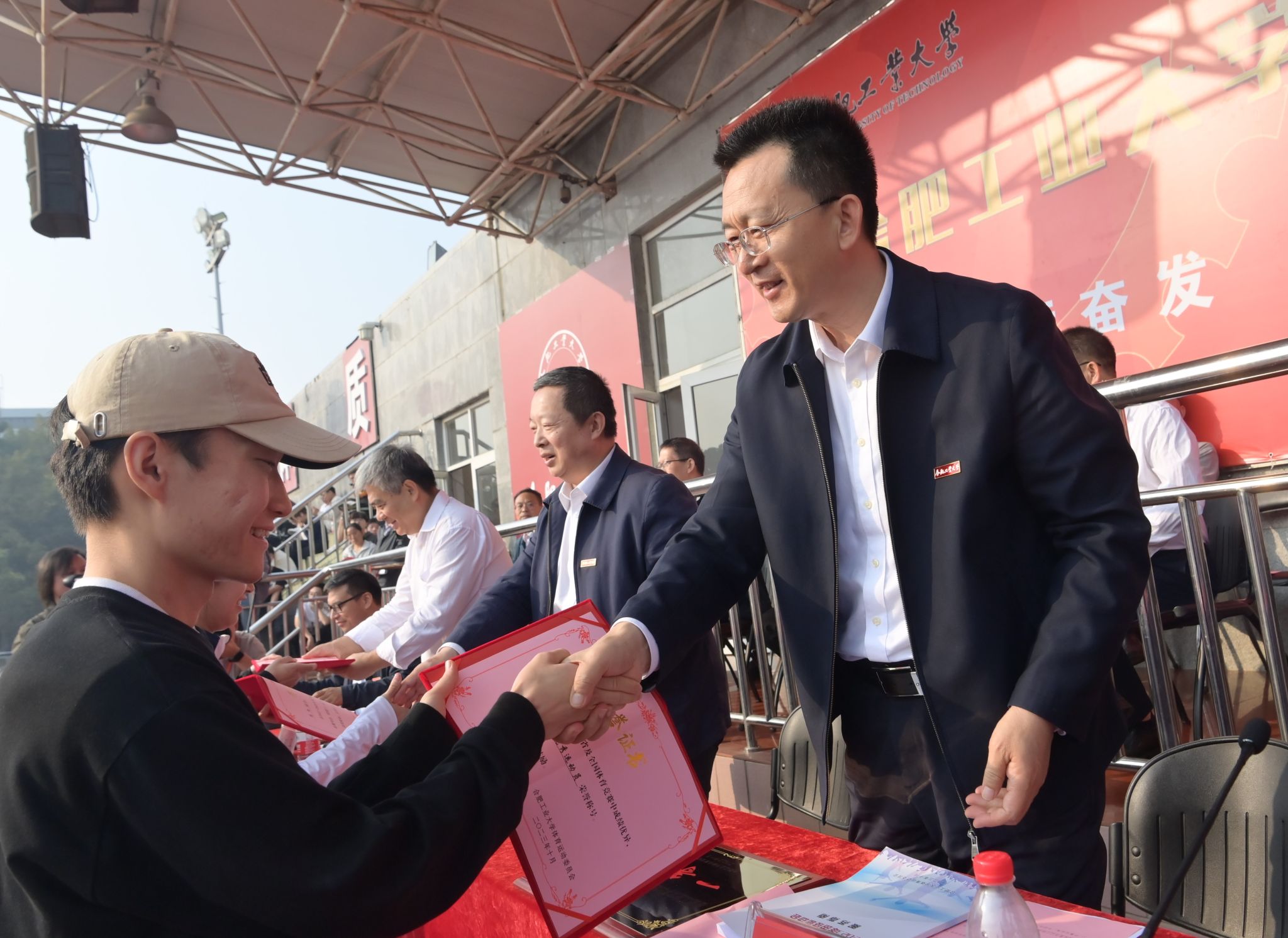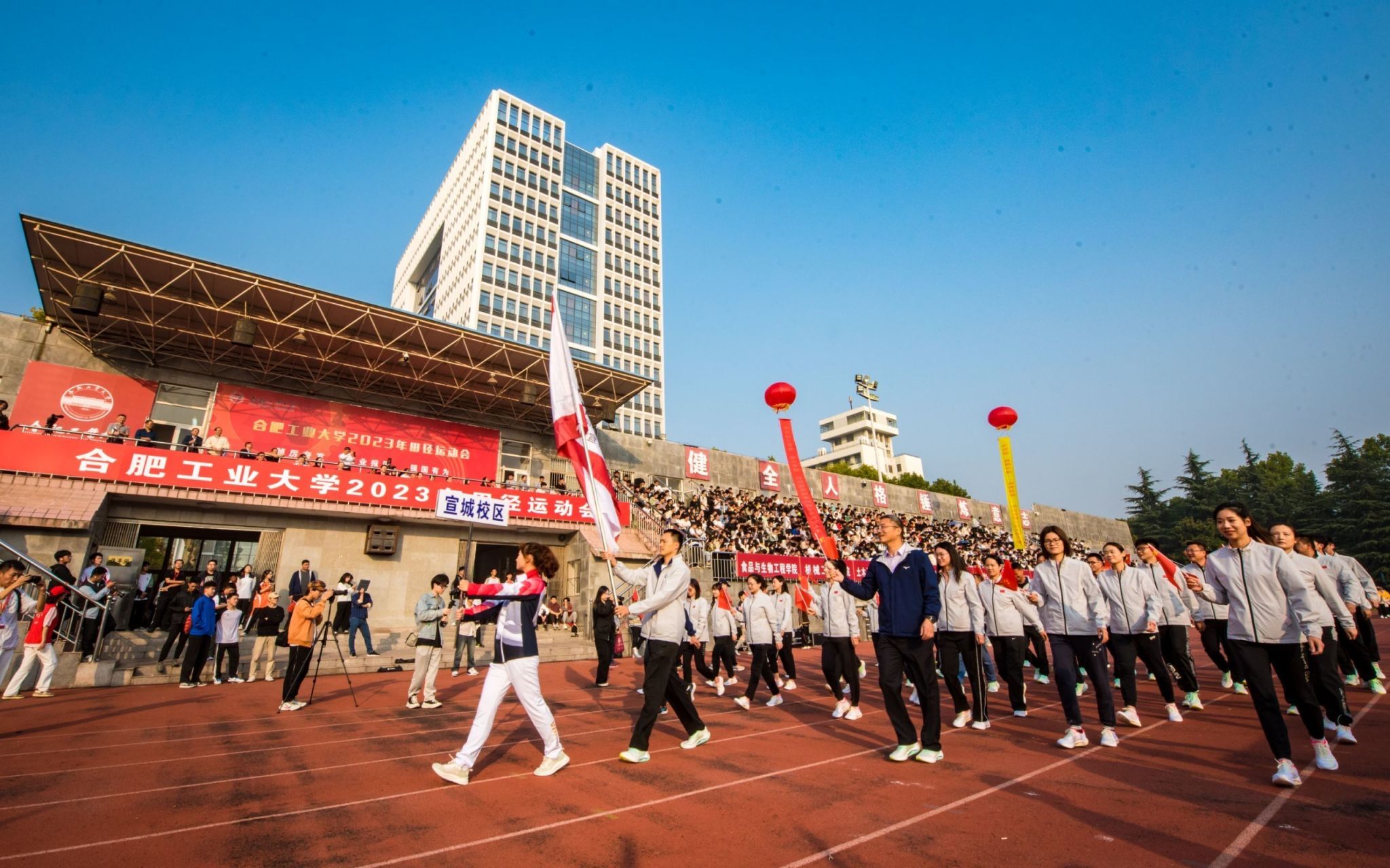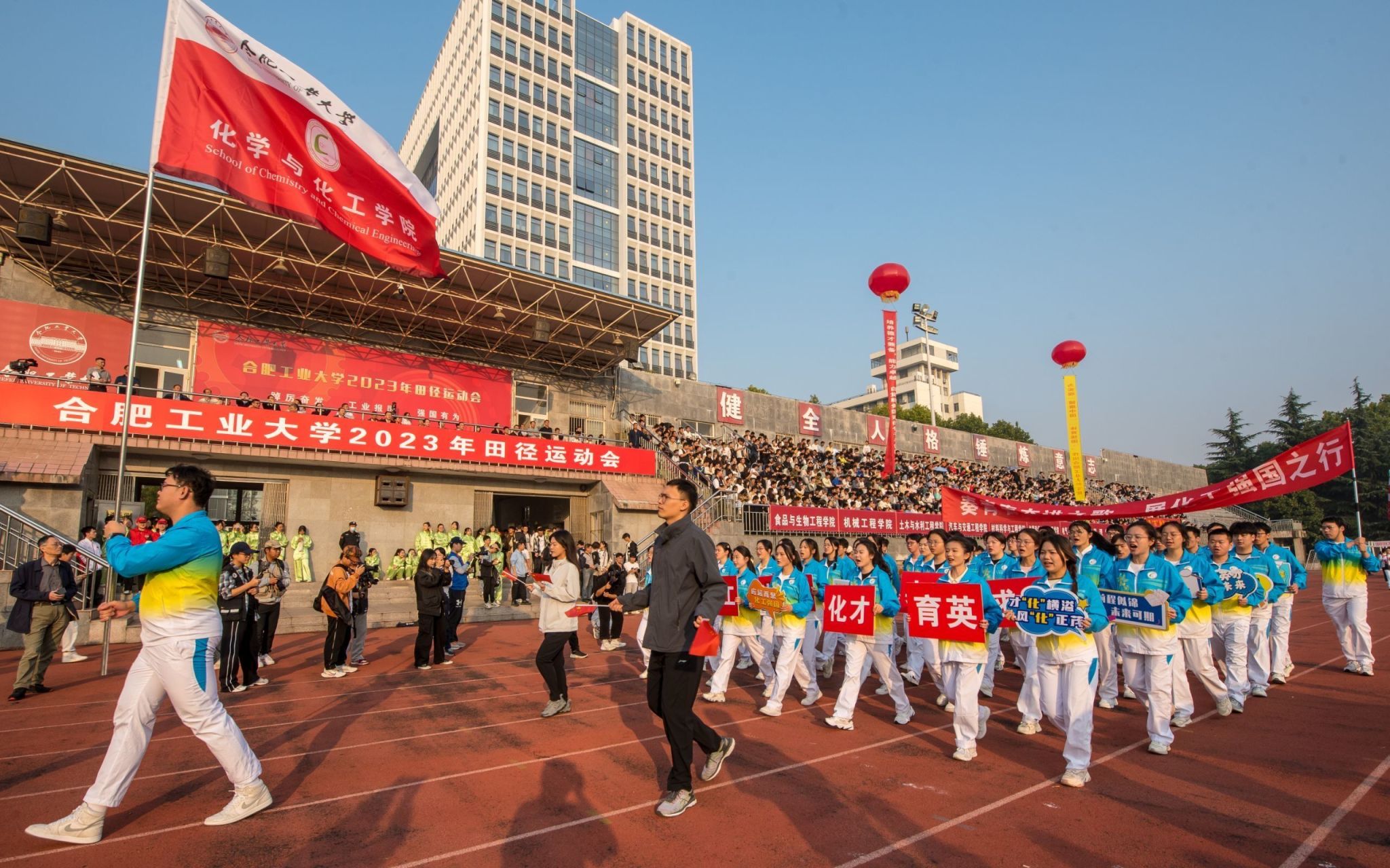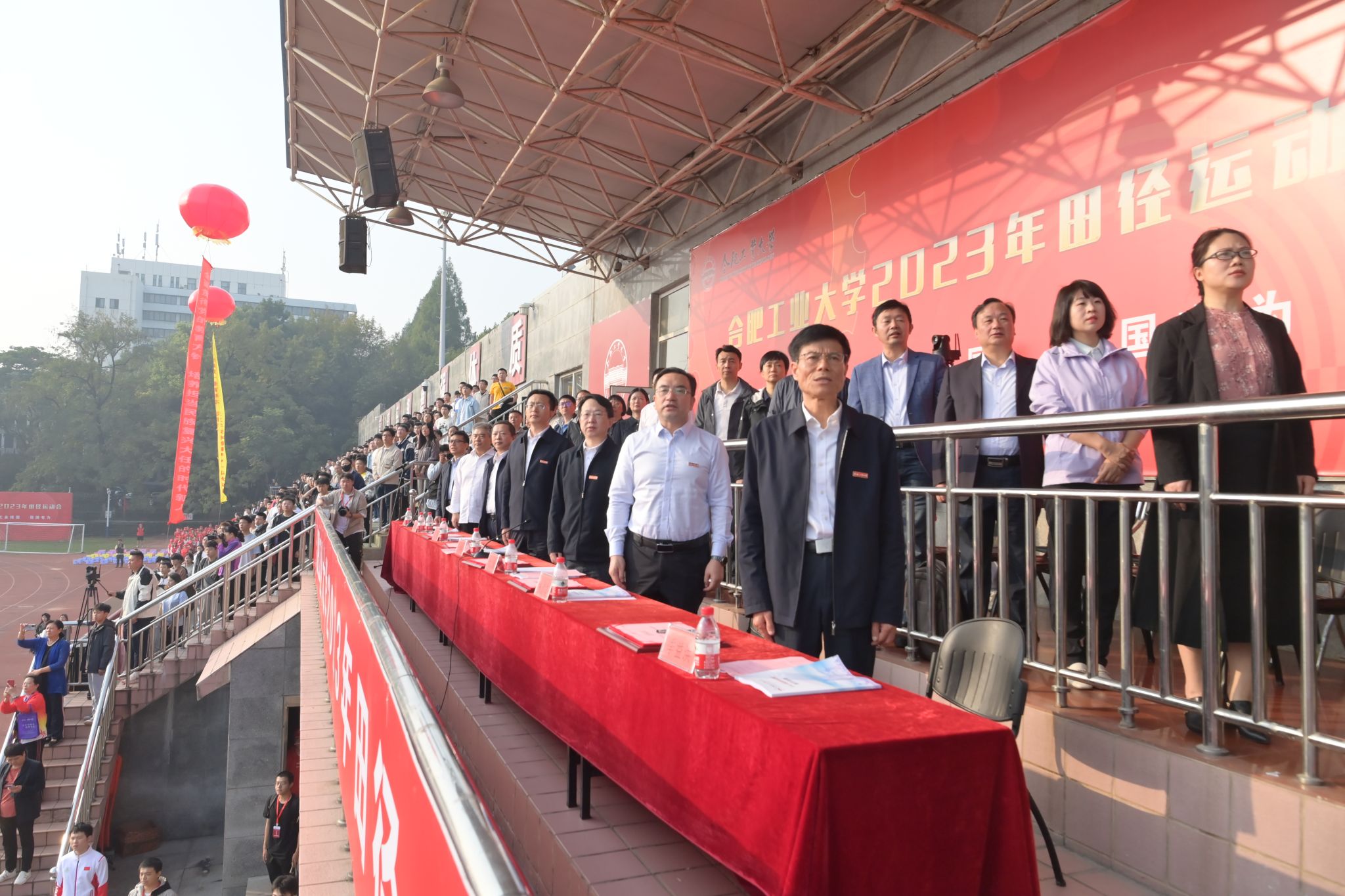 10月19日至21日,学校2023年田径运动会在屯溪路校区田径场举行。校领导于祥成、郑磊、陈刚、施永红、刘晓平、季益洪、丁立健出席开幕式。副校长丁立健主持开幕式。