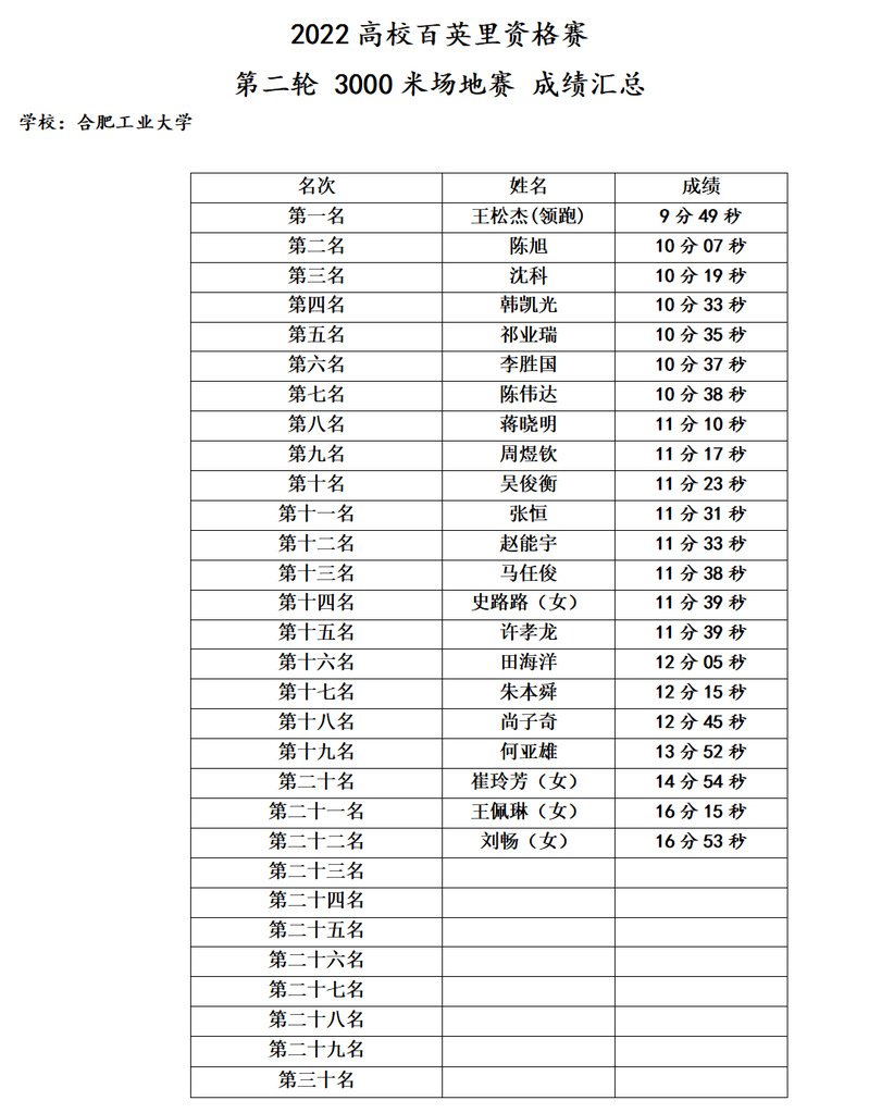 比赛当天,部分工作人员提前两小时到达屯溪路校区东操场开展场地布置等准备工作,为比赛顺利开展打好基础;比赛前一小时,运动员开始热身;比赛前45分钟,裁判员以及其他工作工作人员全部就位;比赛前30分钟,运动员开始检录;17时30分,2022年高校百英里接力赛3000米资格赛—必赢线路检测3003分站赛准时鸣枪开跑。