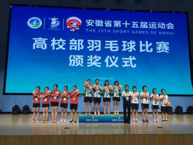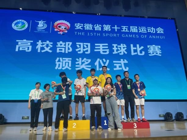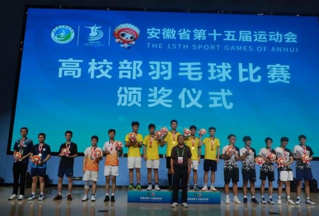 8月14日,安徽省第十五届运动会高校部羽毛球比赛在滁州城市职业学院落下帷幕。我校羽毛球代表队在此次比赛中荣获甲组男子团体冠军、女子团体亚军;并在随后的单项赛中再次斩获男子双打金牌,男子单打铜牌,女子单打第四名和混合双打第五名的优异成绩,创造了我校羽毛球项目在历届省运会上的最好成绩!