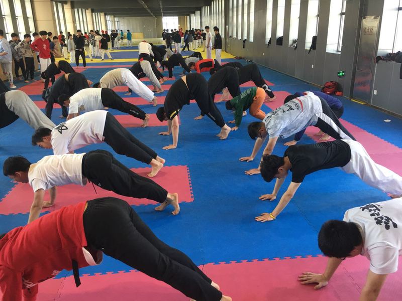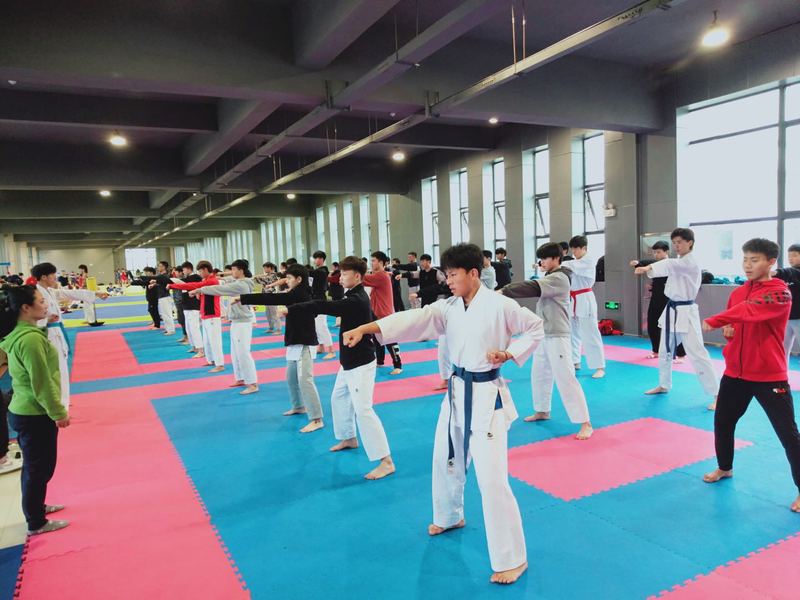 从进门踏上道垫的敬礼开始,一次训练活动就此拉开了帷幕。进入训练馆后,大家迅速脱鞋摆放整齐,排好队伍,从慢跑开始,到滑步,交叉步......最后是压腿,压肩......用几组热身活动充分地唤醒肌肉,拉开韧带,为接下来的技术练习做好准备。准备活动结束后,型和组手的队员们便分散开来,进入到各自的场地,正式开始练习空手道技术。从基本步法、拳法,到型的套路、组手的实战对打,校队队员们专注地投入其中,和合肥队队员们共同完成了所有的练习项目,并且对于不懂或者不擅长的地方,向合肥队的队员们和教练虚心请教,大家互相帮助,共同进步,训练氛围可谓其乐融融,和谐友爱。