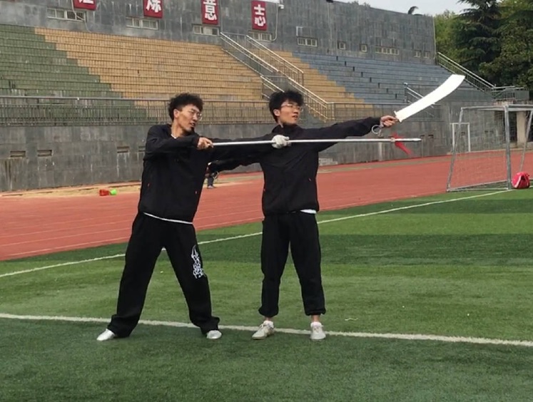 集训期间中,全体队员无论晴天还是雨夜,都一刻不停的打磨着自己的项目,对一个动作的“吹毛求疵”成为了他们休息交谈时候的最大乐趣,特别是李良宸和锁珍明两位队员在自己不懈的努力下,动作上有了新的突破,他们克服了内心中的恐惧后,顺利完成直体后空翻和屈体后空翻两个高难度动作,两位同学激动地说:“大学校园,圆了儿时的梦想!”训练场上队员们遥相挥洒汗水,训练场下队员们彼此监督学习,舞刀弄枪不丢课本知识,也是我武术队的一大特色。