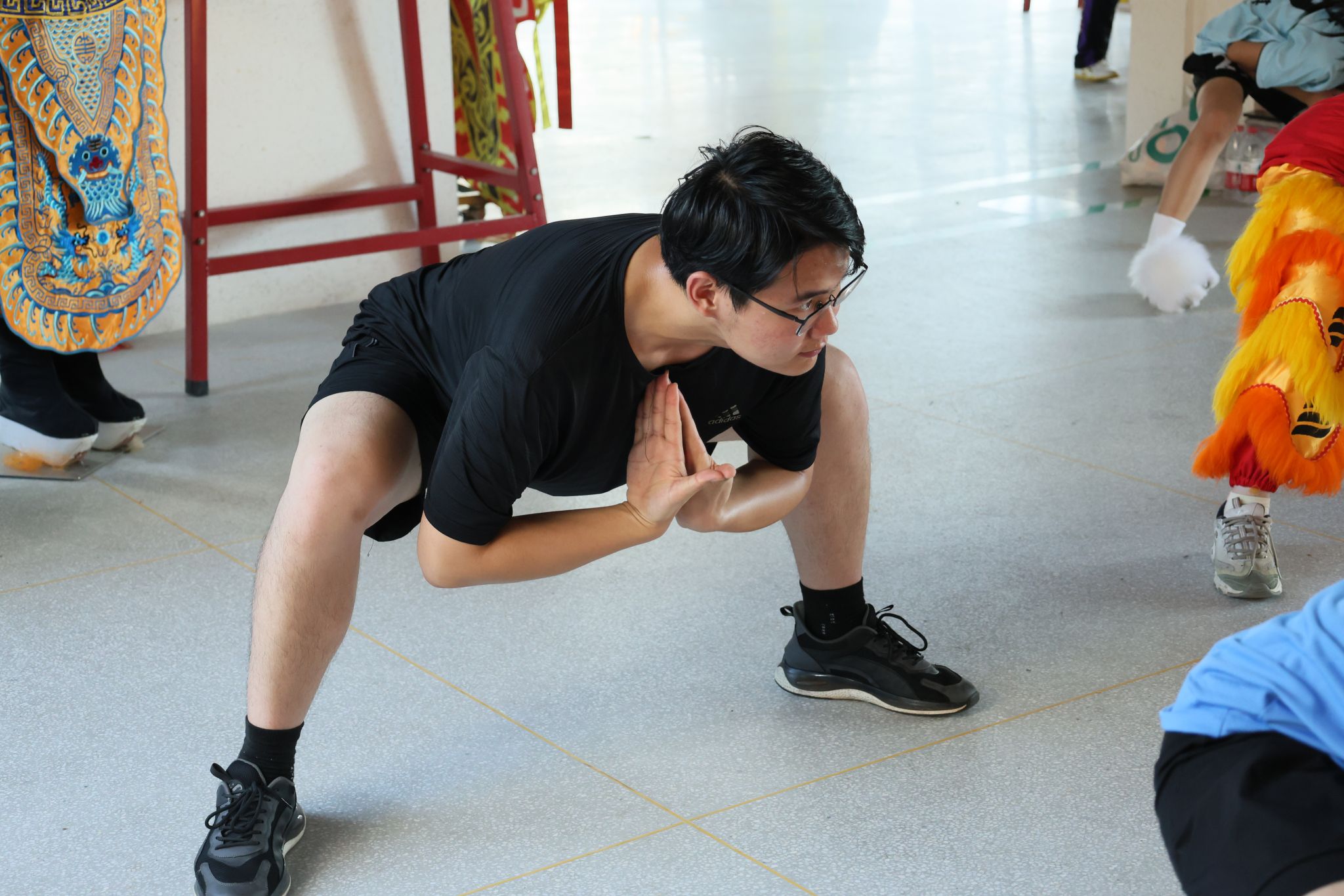 7月3日,团队首站走进合肥洪武传承馆。在民俗技艺传承人徐飞雨师傅的指导下,队员们不仅观摩南狮狮头制作工艺,调研民俗文化发展现状,还投入基础训练,从扎马步到站单腿,苦练龙狮基本功。调研显示,尽管当前民俗文化传承仍面临资金与人才短缺的挑战,但国家政策为龙狮运动注入新动力——中考、高考特招政策正激发更多青少年参与热情。